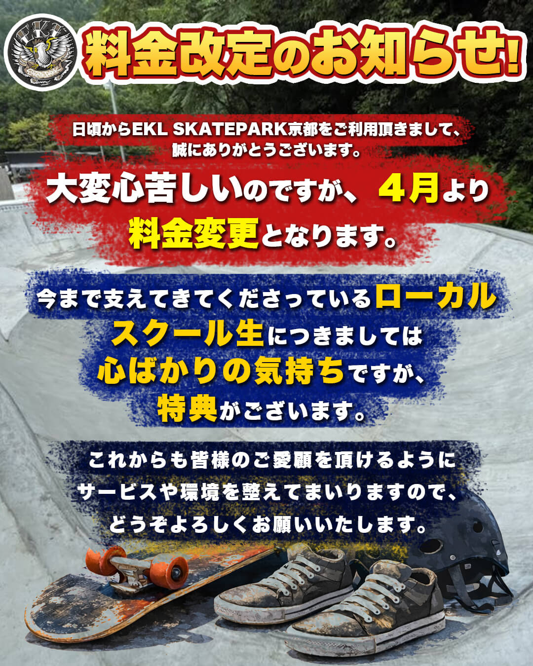 【重要】EKL PARK 京都宇治 運営方針および価格改定のお知らせ(2026年4月1日より)